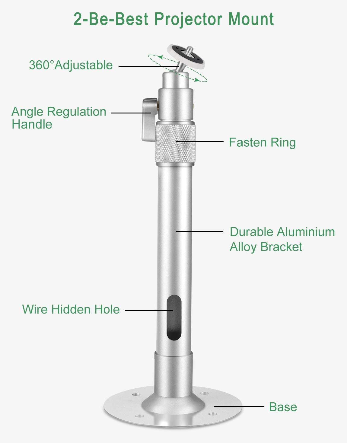 The 2-Be-Best: Adjustable 360° Projector Mount is a versatile choice. It offers impressive adjustability. This mount extends from 14 to 24 inches. So, it fits many setups. Its silver finish looks sleek. This mount is built tough. It holds your projector securely. Therefore, you can trust its stability. The design is really user-friendly. Installation is straightforward. You will appreciate its simplicity. Furthermore, it saves valuable space. Thus, your viewing area remains clear. This makes movie nights better.