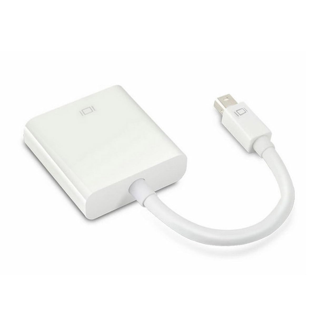 This is a white adapter cable. It connects devices with a Mini DisplayPort to older monitors or projectors. These older screens use a VGA input. The adapter helps show what’s on a laptop screen, for example, onto a larger display. It supports clear video up to 1080P resolution at 60Hz.