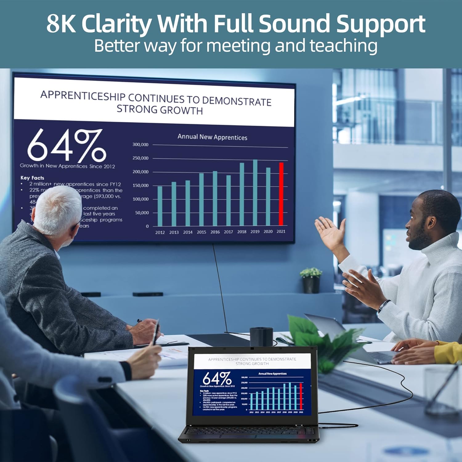 This 35-foot Elecan cable connects devices with a DisplayPort to those with an HDMI port. It uses special fiber optic technology to send super clear pictures. You can get really sharp 8K resolution at 60 frames per second, or smoother 4K resolution at 120 frames per second. The cable has a strong metal shell and is an active cable, meaning it helps boost the signal over the long distance. It’s designed to go only one way, from a DisplayPort 1.4 output to an HDMI 2.1 input, and works great with things like NVIDIA graphics cards, HDTVs, monitors, and projectors.