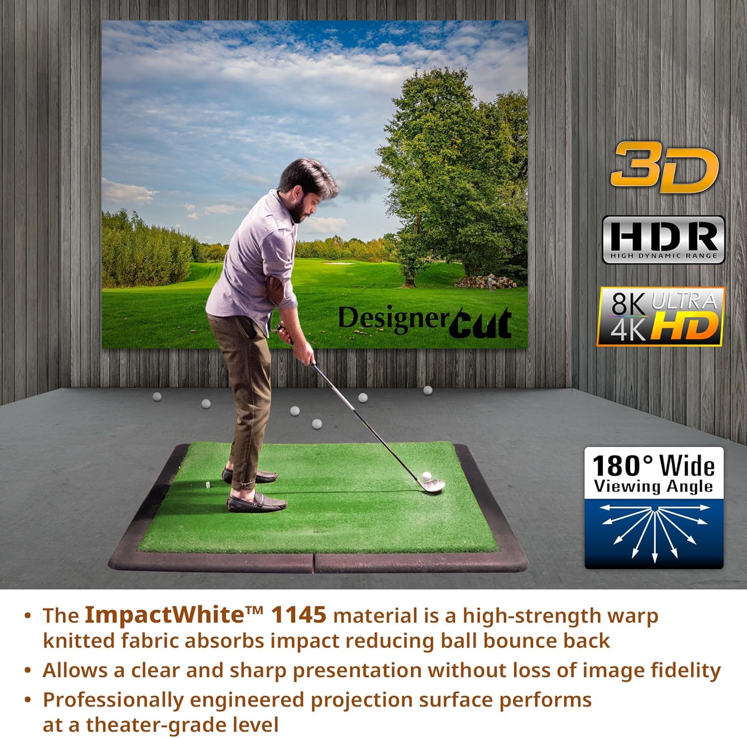 The Elite Screens Designer Cut RM-10X10-IPW1145 is a 10’x10′ sheet of ImpactWhite projector screen material. It’s designed for DIY projects, especially for golf and multi-sport simulation. This raw material comes folded and is easy to set up, making it a straightforward option for creating your own simulation screen.