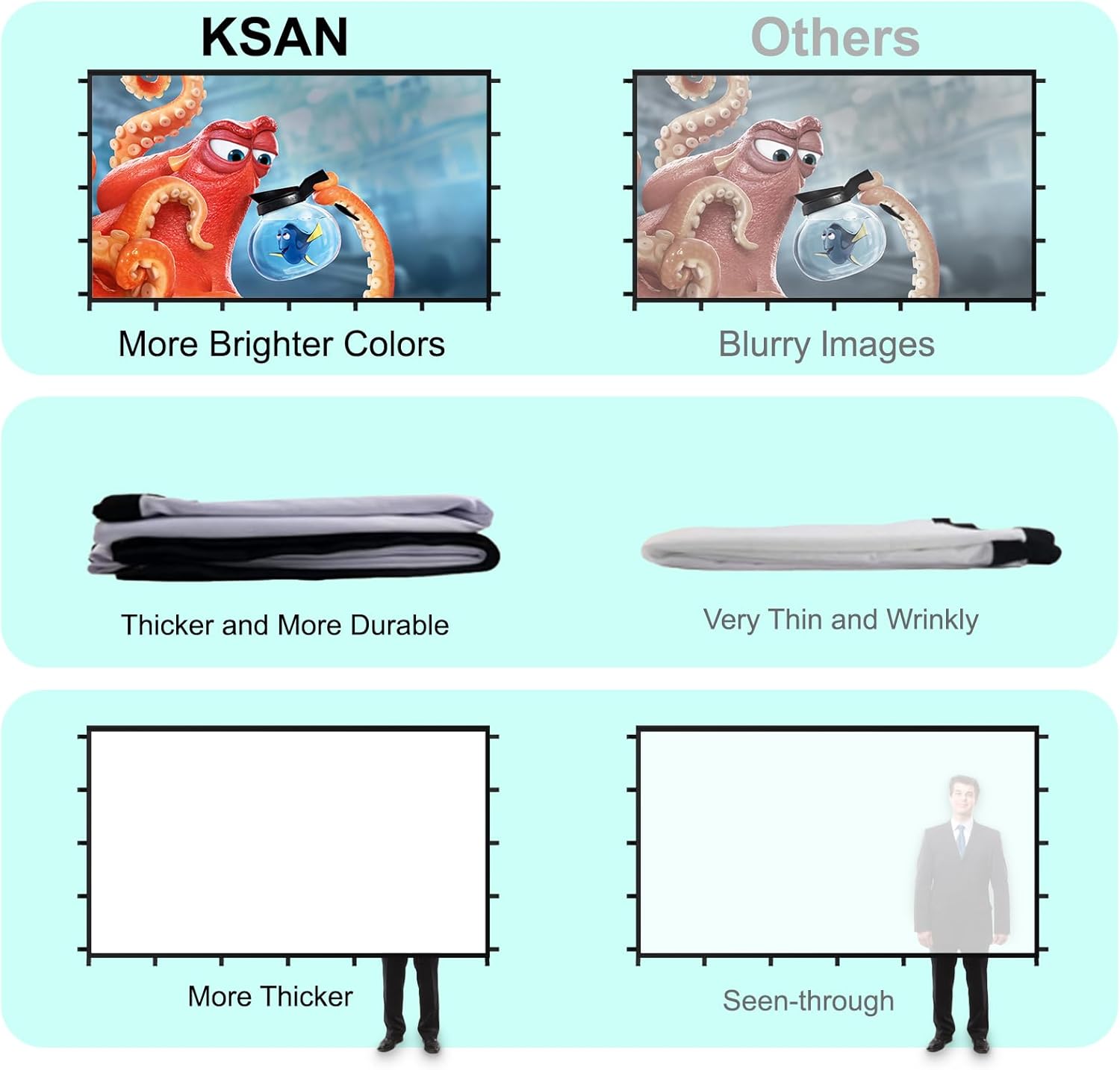 The KSAN 120″ Foldable Projector Screen is a fantastic choice. It is like a magic window. This screen transforms any space. You get a huge 120-inch display. The 16:9 aspect ratio is perfect. It’s great for movies. Also, presentations shine. The anti-crease material is a big plus. You won’t see annoying wrinkles. Furthermore, it folds easily. This makes it super portable. The included stand is sturdy. Setting it up is a breeze. Therefore, you can use it anywhere.