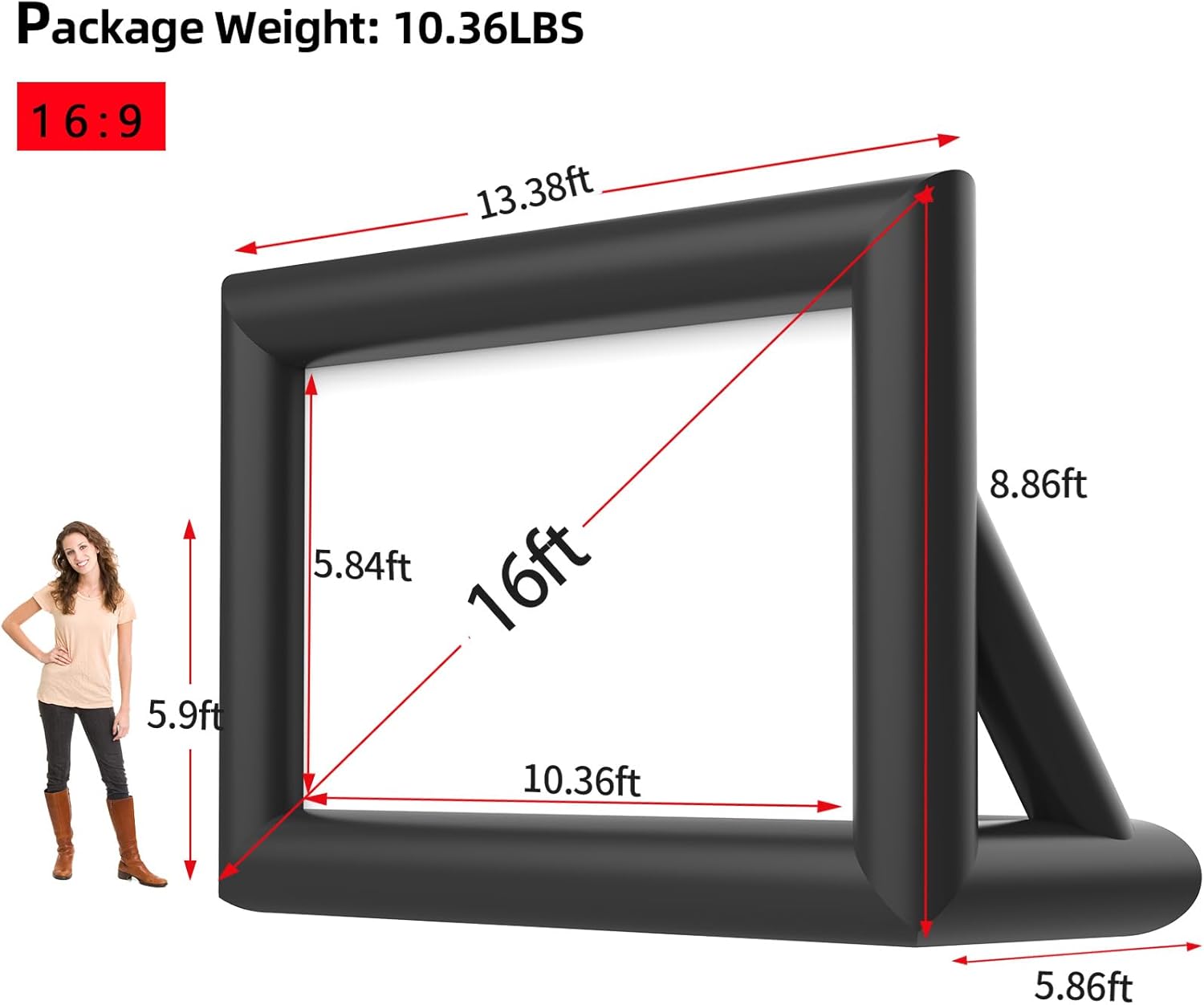 • ✅ 【BIGGER SCREEN,BETTER EXPERIENCE】Our inflatable projector screen gives you more to watch! While most screens are 4.9ft x 9ft. OURS is a spacious 5.84ft x10.36ft, offering a larger more immersive viewing experience.