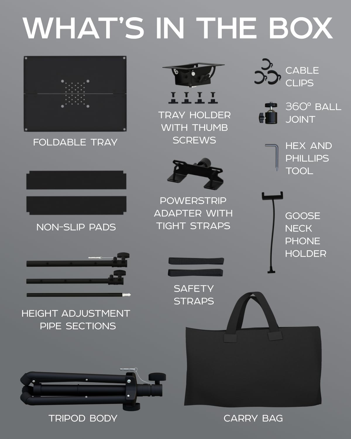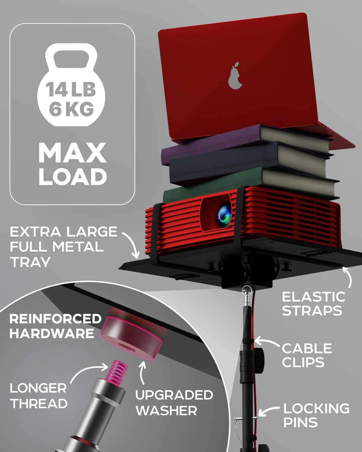 The PropVue Projector Tripod Stand is a simple, portable stand that can hold many different things. You can adjust its height from 26 to 59 inches, making it useful for various setups. It’s built well and easy to change, perfect for holding a projector, laptop, camera, or even lights for a DJ or movie night.