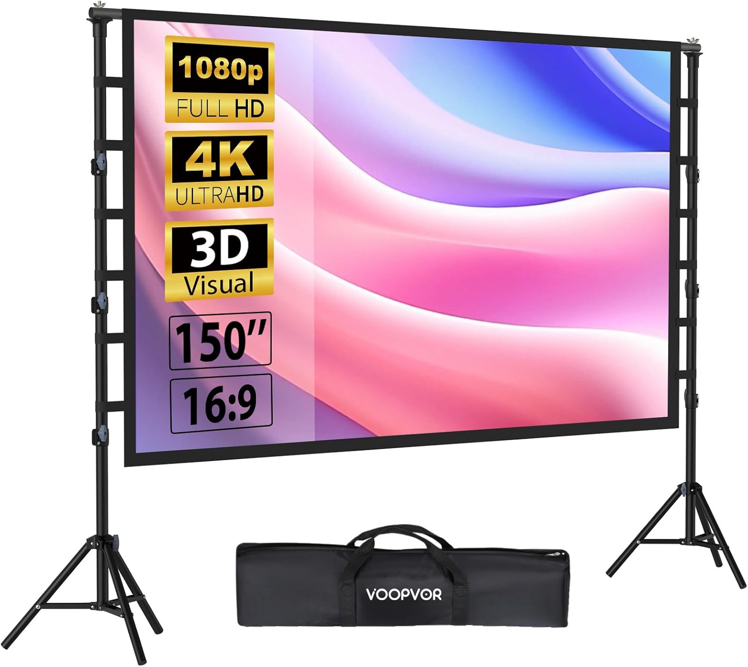 Outdoor Projector Screen with Stand 150 Inch: VOOPVOR Portable Projection Screen and Stand, Indoor Rear Front Movie Screen 16:9 4K HD, with Carry Bag,Support Height Adjustable for Home Theater Camping